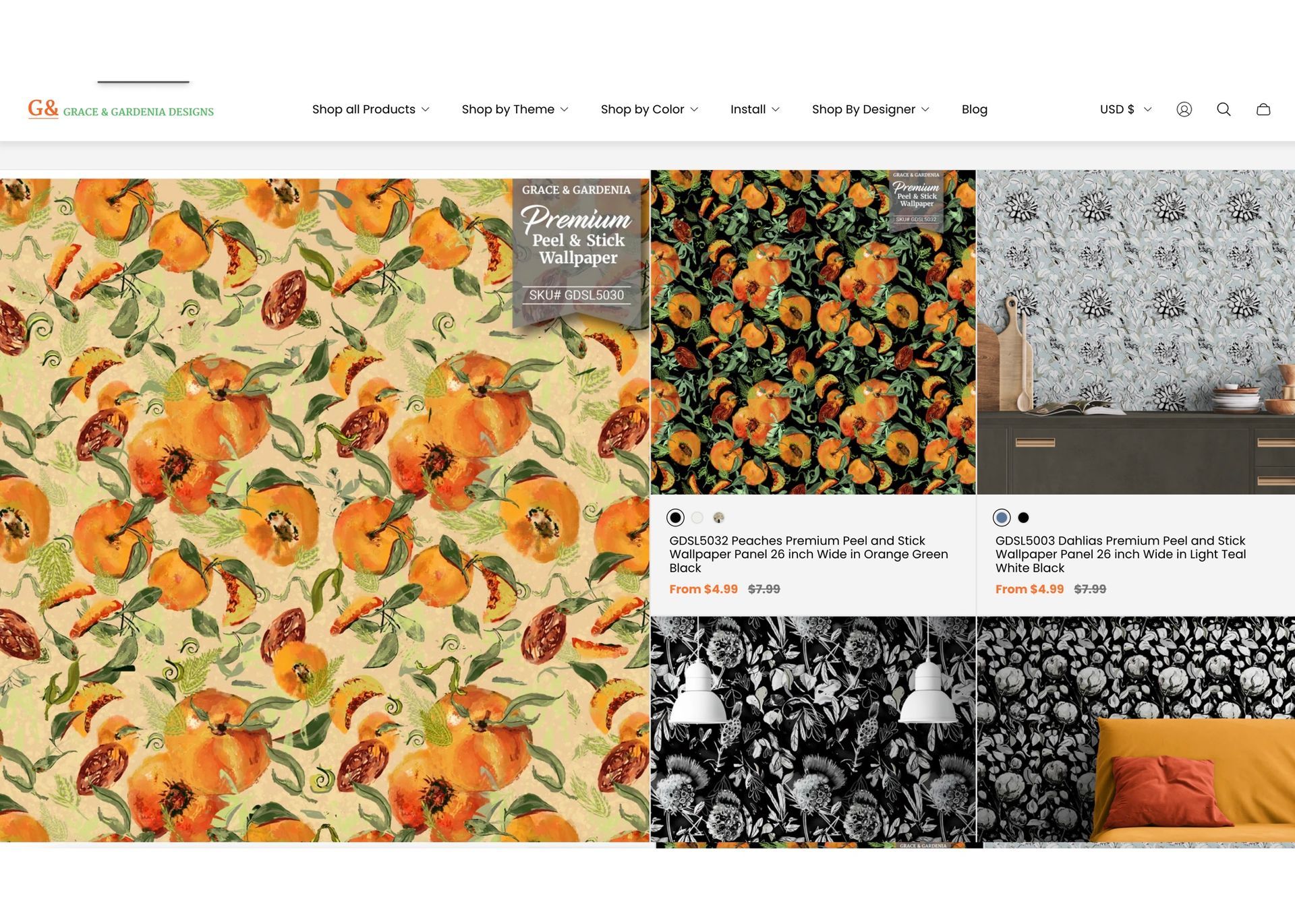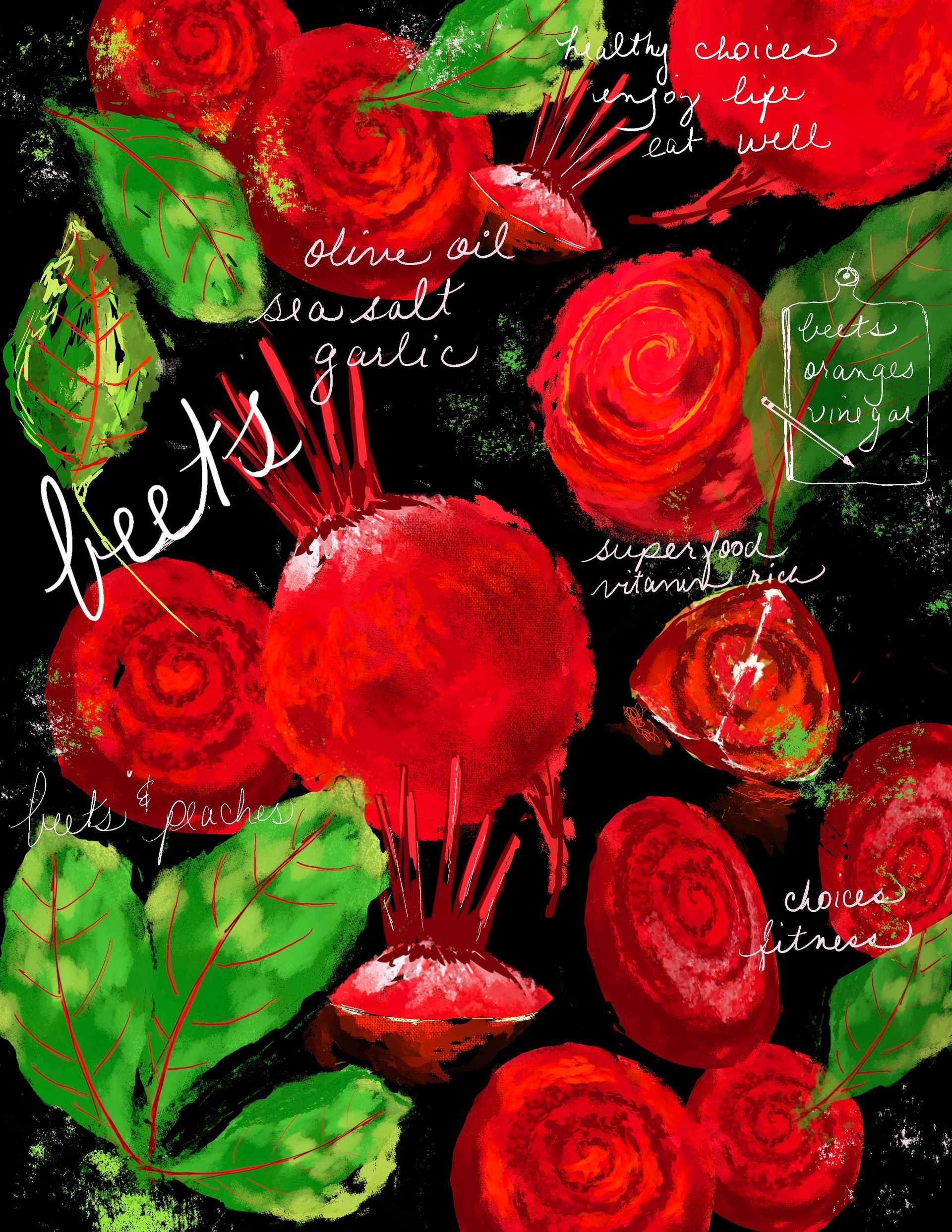 Whether in designs for wall art (far left) or wallpaper (below) she enjoys a thoughtful process to surface design. It's one that balances artistry with practical applications. Some designs carry her back home to gardens and grandparents near the Auburn, AL honeysuckle vines of her southern roots. Others waft of the veggies her grandfather planted, grafted and enjoyed around family conversations... and laughter!