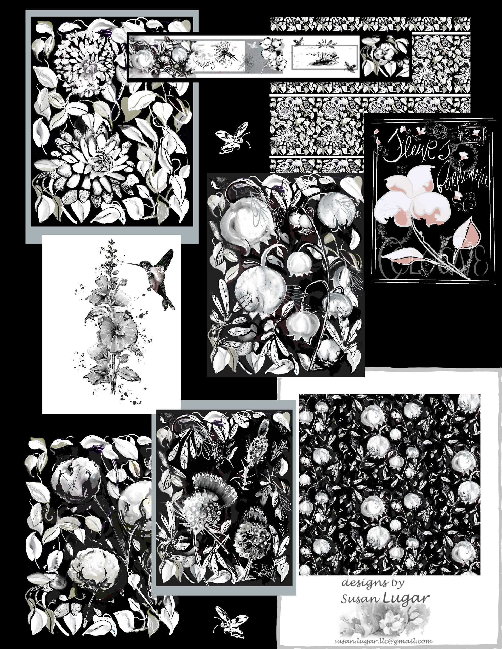 Collections come from a lot of inspirational points: for me from southern Alabama roots to Asian dwellings and work travels, ideas spark with cosmic flare or tiptoe ballerina soft. Simple designs slip in as did the Hummingbird on Hollyhocks design! (rt hover) This illustration stemmed from a Hollyhocks photo taken in Wyoming that has landed in ecommerce Target, Bed Bath & Beyond, Wayfair and a number of other places.